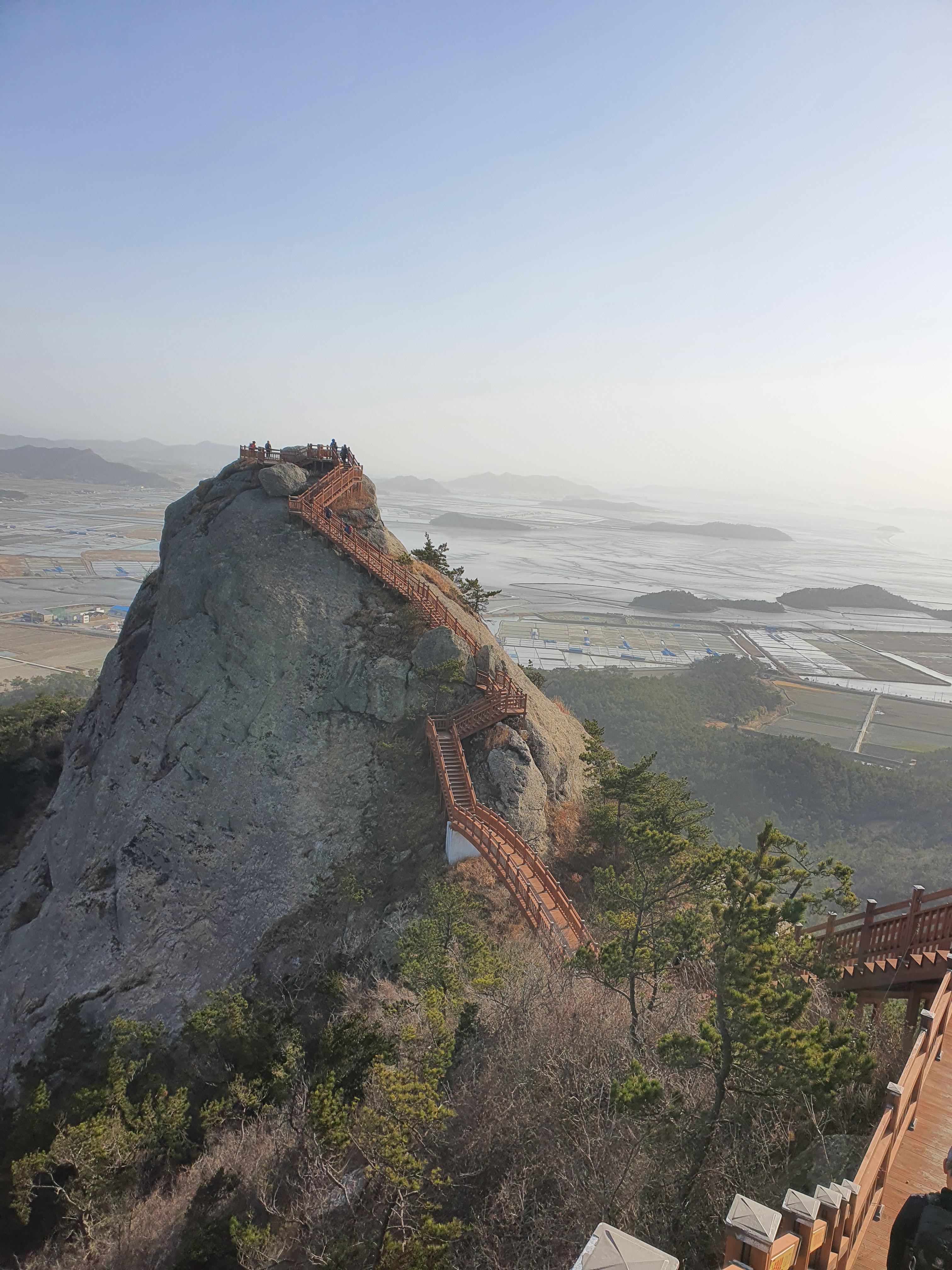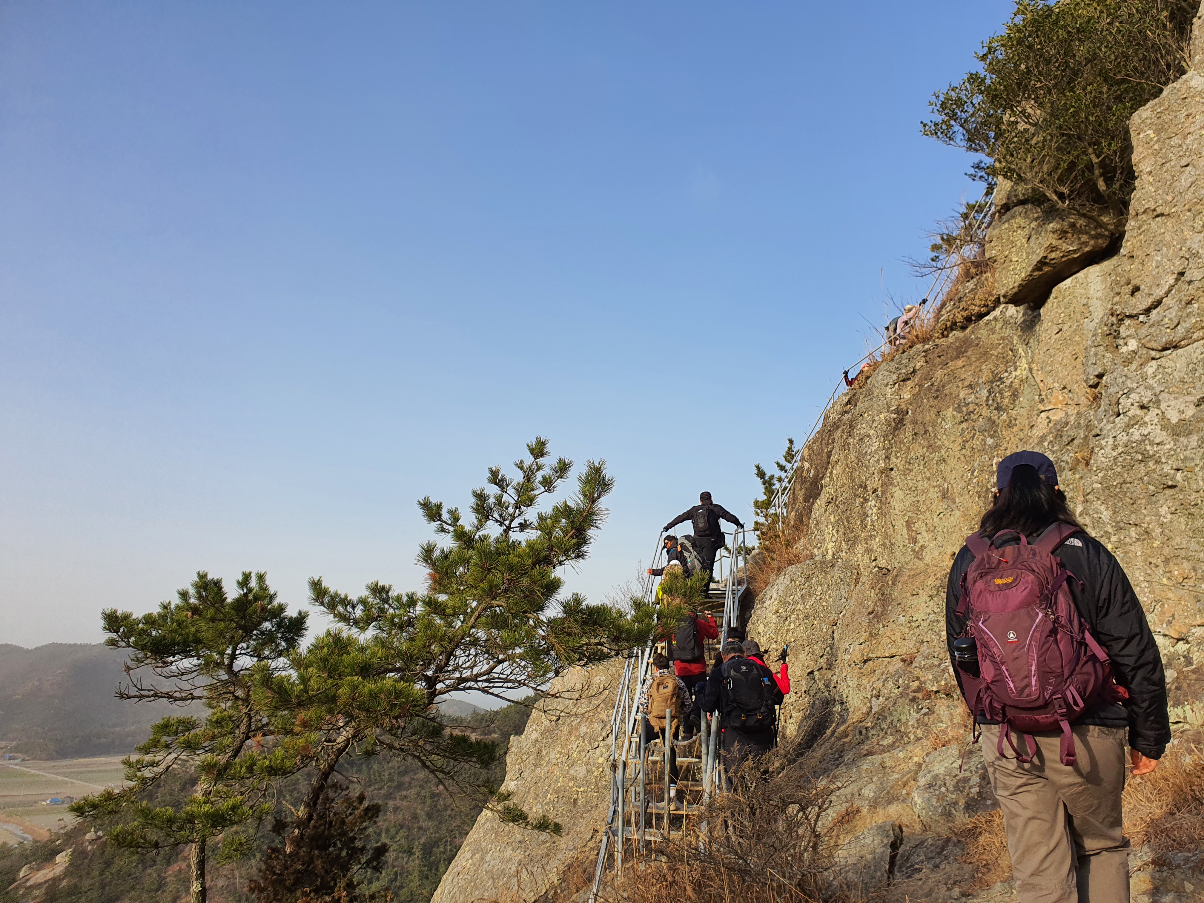 암릉에 철계단을 박아 오르게 되어 있다. 많이 가파라 나 같은 고소공포증 환자에겐 쥐약이다.